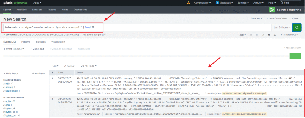 index=main sourcetype="symantec:websecurityservice:scwss-poll" | head 20