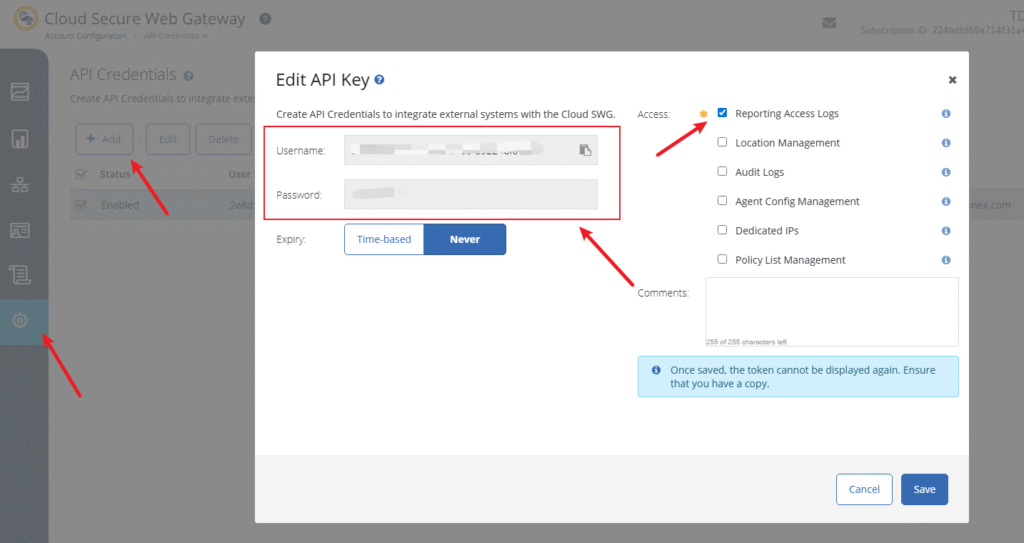 API User Name | Cloud SWG API User Name |