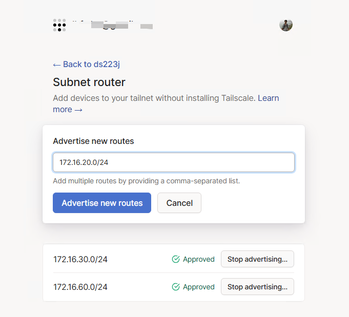Subnet routes: 172.16.20.0/24